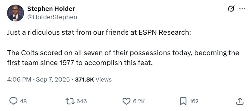 From start to finish, the Colts delivered a dominant and complete performance, setting the tone for what could be a promising season ahead. In his highly anticipated Colts debut, quarterback Daniel Jones was nothing short of spectacular, he orchestrated a masterful offensive showing. Jones completed 22 of 29 passes for 272 yards and a passing touchdown, while also adding two rushing touchdowns. The Colts scored on all seven of their offensive possessions, a remarkable feat no NFL team had accomplished since 1977. Rookie tight end Tyler Warren emerged as a reliable target, hauling in seven receptions for 76 yards, while star running back Jonathan Taylor powered the ground game with 71 rushing yards.