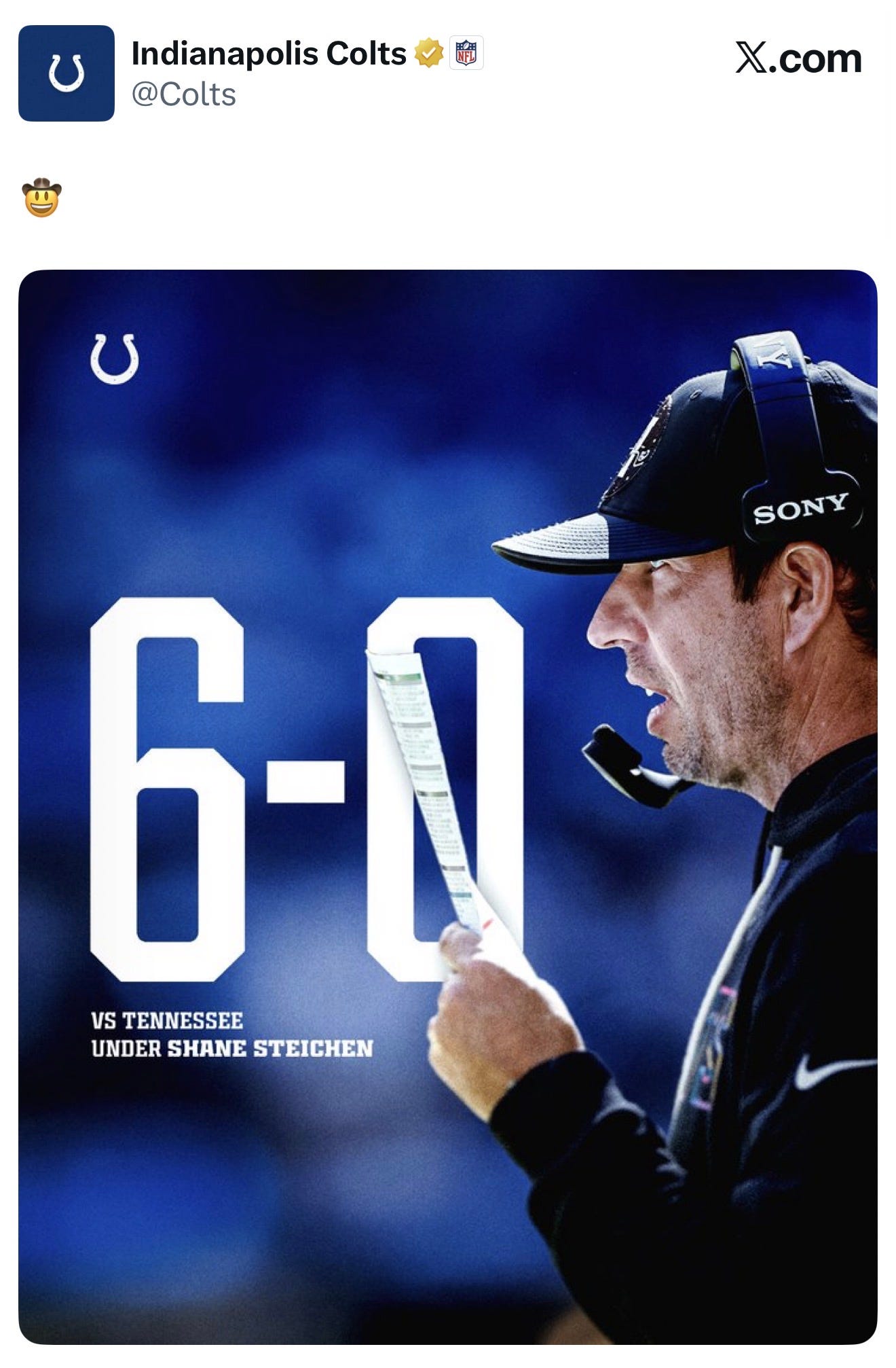 The Colts’ 38-14 victory over the Titans marks the third consecutive season they have swept the Titans.