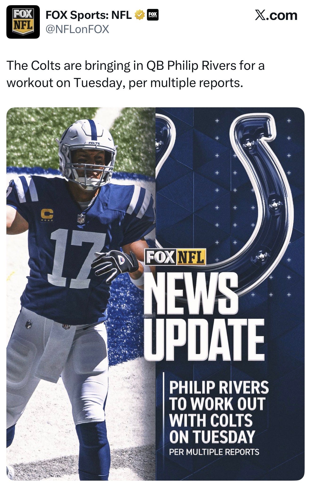 Philip Rivers, the former quarterback for the Chargers and Colts, turned 44 yesterday. Recently, it was reported that he has been working out with the team. The team is contemplating whether he might join their practice squad. Rivers last played in the NFL in 2020 when he played for the Colts and led the team to an 11-5 season before transitioning into coaching high school football.